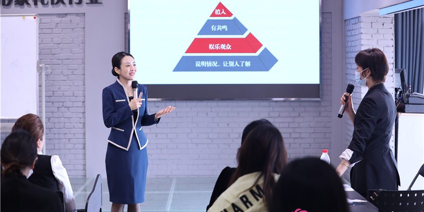 风尚圈逯老师以如何提升礼仪培训师的授课水平为主题,围绕着声音美学、表达礼仪两大板块进行授课。在课程中,风尚圈逯老师通过小组演练、现场互动、课堂翻转等教学模式对开场和结尾的激情燃放、教学现场的氛围营造、讲师情绪的科学调节、无声胜有声的课程营销等方面进行讲解。